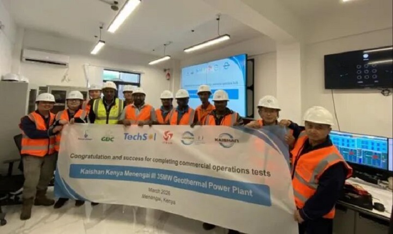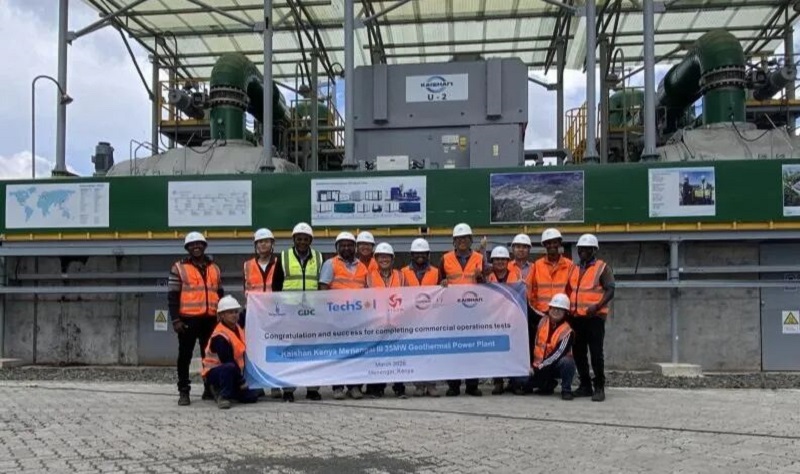 3月5日,BEATS365官网集团股份有限公司在肯尼亚Menengai地热区全资拥有并建设的第一座地热电站(KK01——Kaishan Kenya 01电站)顺利完成了从2月2日开始的为期30天稳定性运行测试,至此,该电站全部的独立第三方见证测试均已完成,明天,独立工程师将颁布证书并通知肯尼亚国家电网公司KPLC,宣告这座电站实现商业运行(COD)。